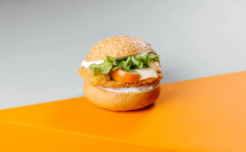 Обжаренное куриное филе, панированное в сухарях, которое подается на булочке с кунжутом, заправленной хрустящим салатом, ломтиками сочного томата, ломтиком сыра и фирменным соусом.