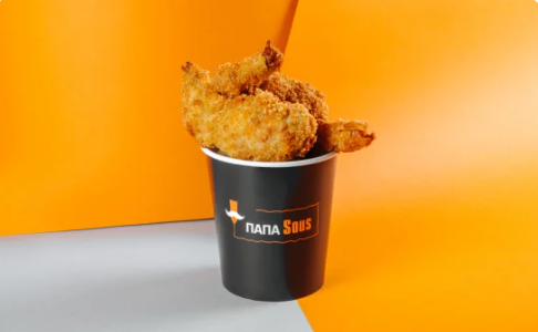 Куриные ножки - 2шт, куриные крылья - 5шт, картофель фри малая, куриное филе панированное - 160г, фирменный соус