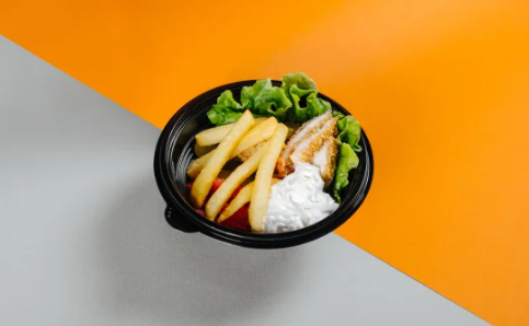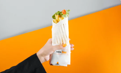 Картофель фри, хрустящий салат, ломтики сочного томата, хрустящие маринованные огурчики в зажаренной пшеничной лепешке, заправленный сырным соусом.