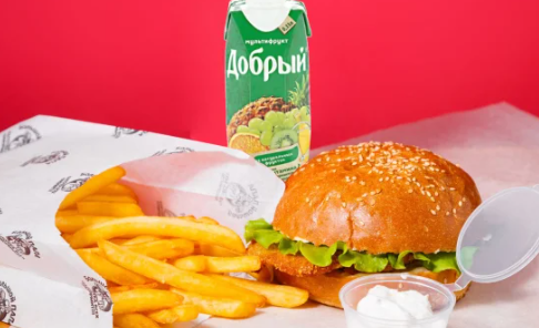 Чикенбургер, картофель фри средняя, соус фирменный, сок 0,33л